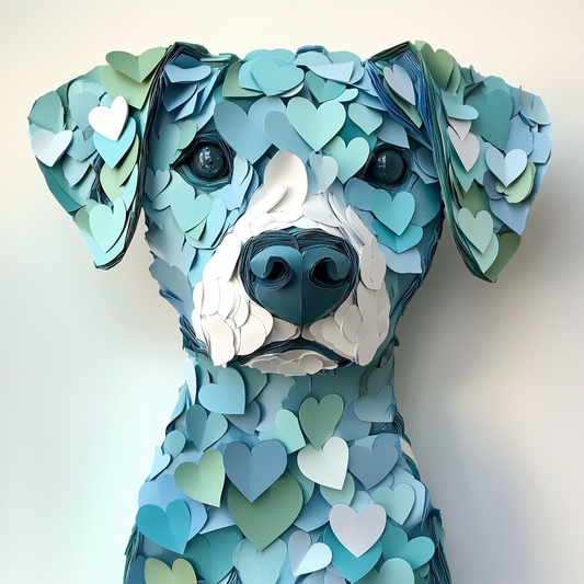 Tableau Décoratif Chien en Cœurs Bleu Pastel